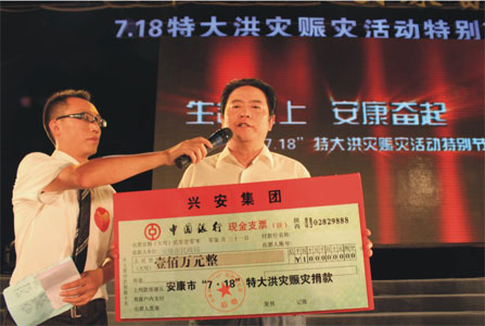 7月18日,我市遭受了一场自1983年以来最为严重的特大洪水和泥石流灾害。全市10县区168个乡镇受灾,受灾人口达125万人,灾害死亡63人、失踪119人。直接经济损失达51.3亿元。无情的洪水和泥石流冲毁了同胞赖以生存的家园、吞噬了亲人的生命,安康大地充斥着泪水和悲伤。 在那漆黑的雨夜,我们的市委书记刘建明来了,他带来了党坚实的臂膀。在那洪水肆虐灾区,我们的市长方玮锋来了,他带来了政府最有力的保障。在那生命飘摇的抗洪第一线,我们的人民子弟兵、基层干部、社会各界人士都来了,他们带来的不仅仅是爱心,更是血浓于水的亲情。面对灾难,安康人民没有退缩,擦干眼泪,手挽手,团结在一起。在市委市政府的统一领导指挥下,化悲痛为力量,齐心协力抗洪救灾。 兴安地产集团生于斯、长于斯,和家乡人们同呼吸,共患难,灾区人民的痛苦我们感同身受,肩负着“兴安、兴业、兴家”的社会使命,抗洪救灾我们义不容辞。7.18当晚,集团党总支书记、董事长江树群在集团公司办公室紧急成立“抗洪救灾领导小组”,召集集团40余名职工奔赴城区重点受灾现场,协助受灾群众撤离,调拨援建物资车辆,安置灾民临时用房,直至凌晨两点,洪水退去。灾后,一方面抽调施工专用车辆和安排“抗洪救灾小组”帮助群众开展生产自救、重建家园,另一方面组织资金和号召集团员工捐款救灾。在第一次捐款39万元后,得知本次灾后损失和受灾群众生活环境的艰苦,董事长代表集团在“7.18特大洪灾晚会上再次捐款100万,为灾区重建,表达“兴安人”绵薄之力。 文化的力量、感恩的心态、关爱的精神这是安康人民大爱的精髓,更是兴安地产集团的立企之本。洪水固然无情,灾难的确可怕,但洪水冲不垮我们的希望,灾难吓不垮我们的意志。因为我们手挽手,心连心在党和政府的关怀下,并肩而立!          董事长江树群在“7.18特大洪灾晚会”捐款               集团组织员工在丁字街清除垃圾 |